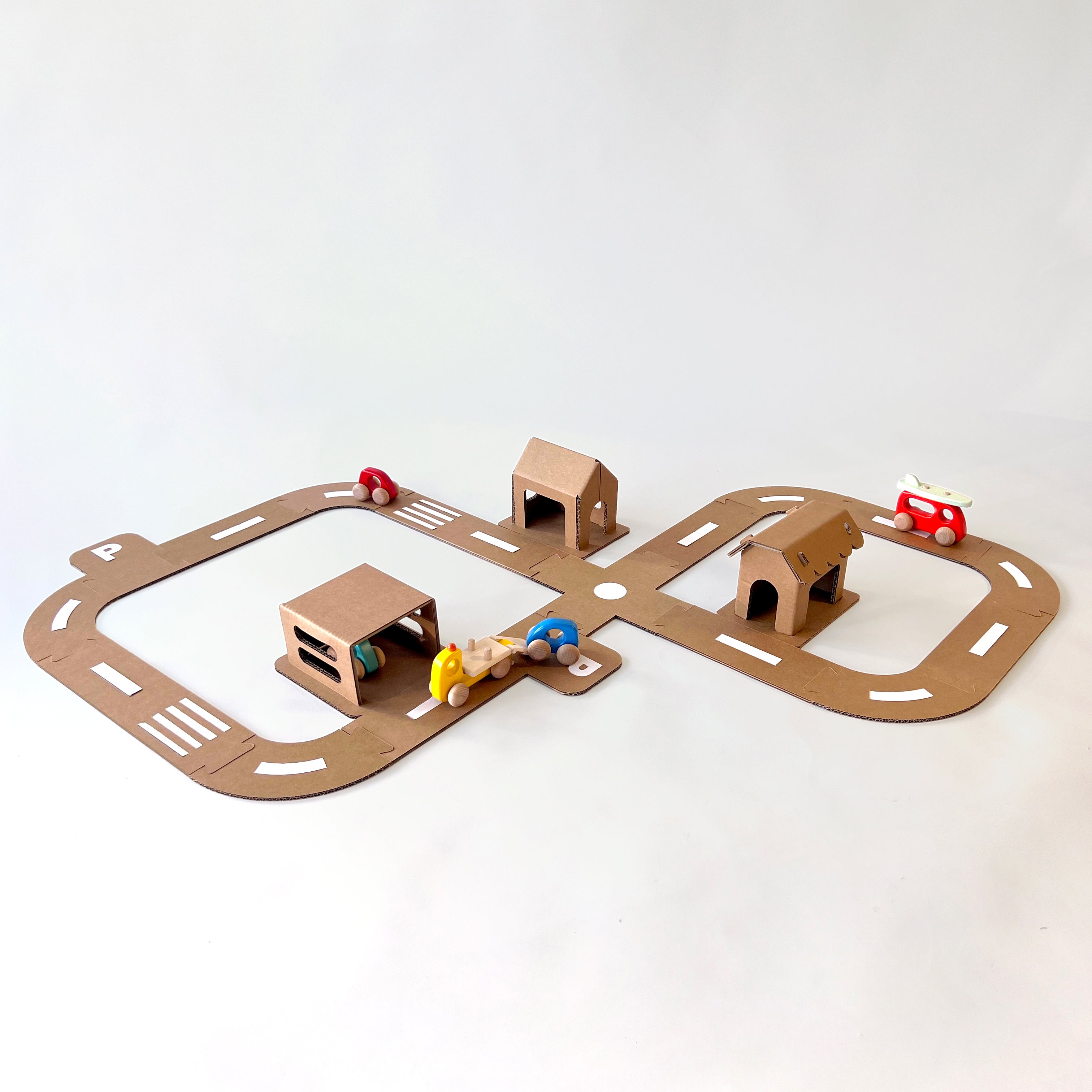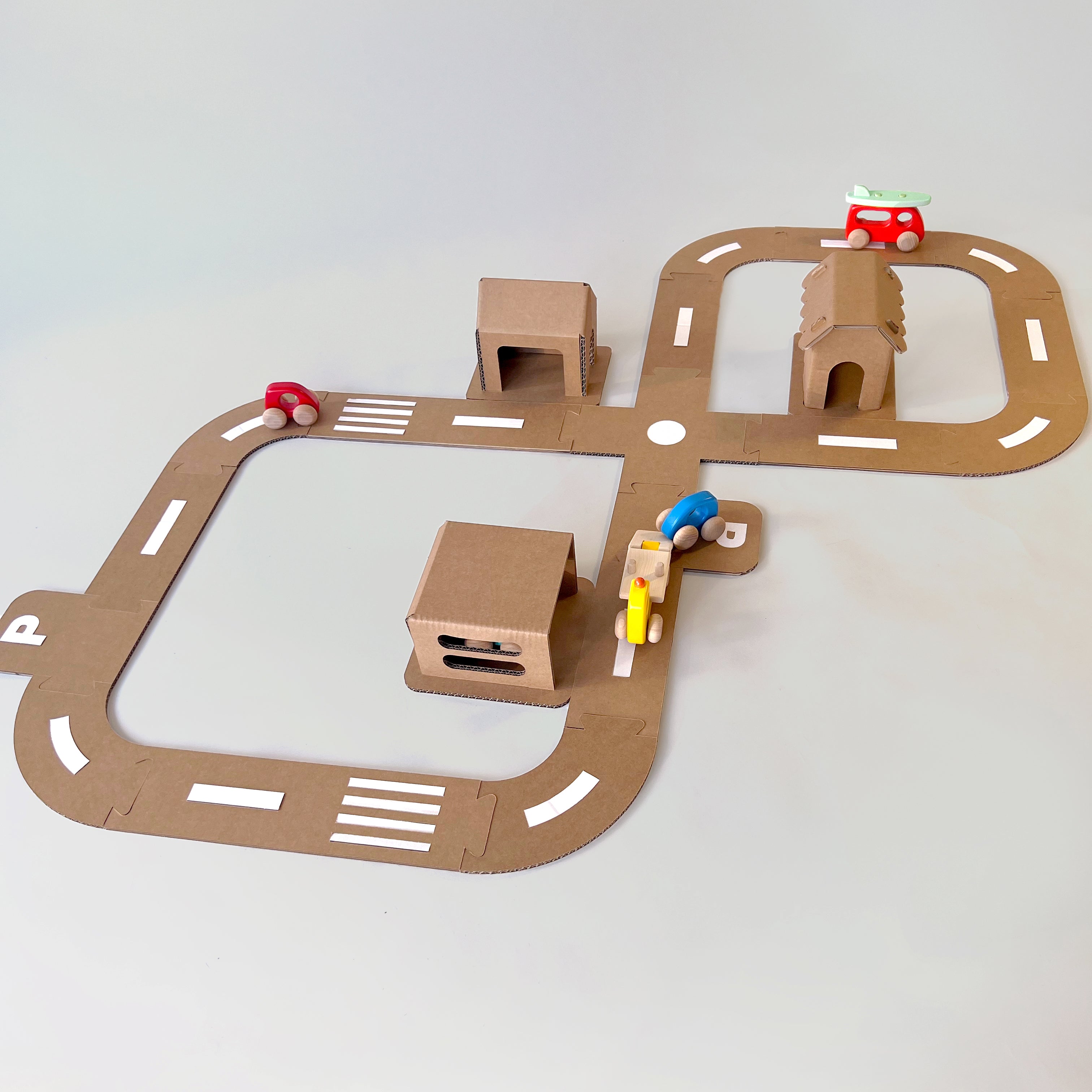 Baue dir deine eigene Verkehrswelt für deine Lieblingsfahrzeuge auf. Mit drei Häuschen, Zebrastreifen und Parkplatz - da ist aber was los auf den Straßen.